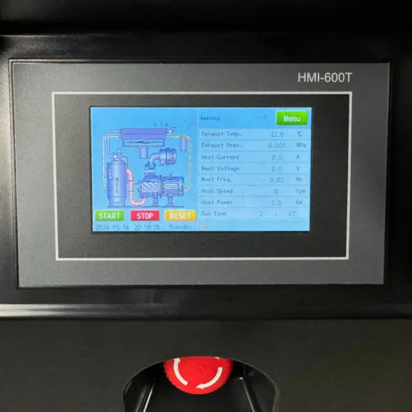 Sterownik umożliwia zmianę wartości minimalnego i maksymalnego ciśnienia, konfigurację harmonogramów pracy oraz kontrolę obciążenia. Dzięki wbudowanemu modułowi łączności możliwe jest także zdalne monitorowanie i zarządzanie kompresorem przez Wi-Fi, co daje szybki dostęp do danych serwisowych i parametrów pracy z dowolnego miejsca.
